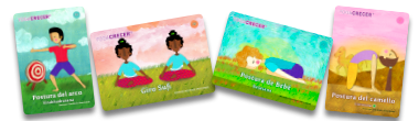 Te ofrecemos este set de 42 cartas para jugar elevando la conciencia de niños y niñas. Es fruto de un año y medio de trabajo. Cada carta es una obra de arte, acuarelas, lápices pastel crean un mundo de magia con cada postura de yoga. Te invitamos a hacer de ellas y cada personaje uno de los mejores amigos de tus pequeños estudiantes.